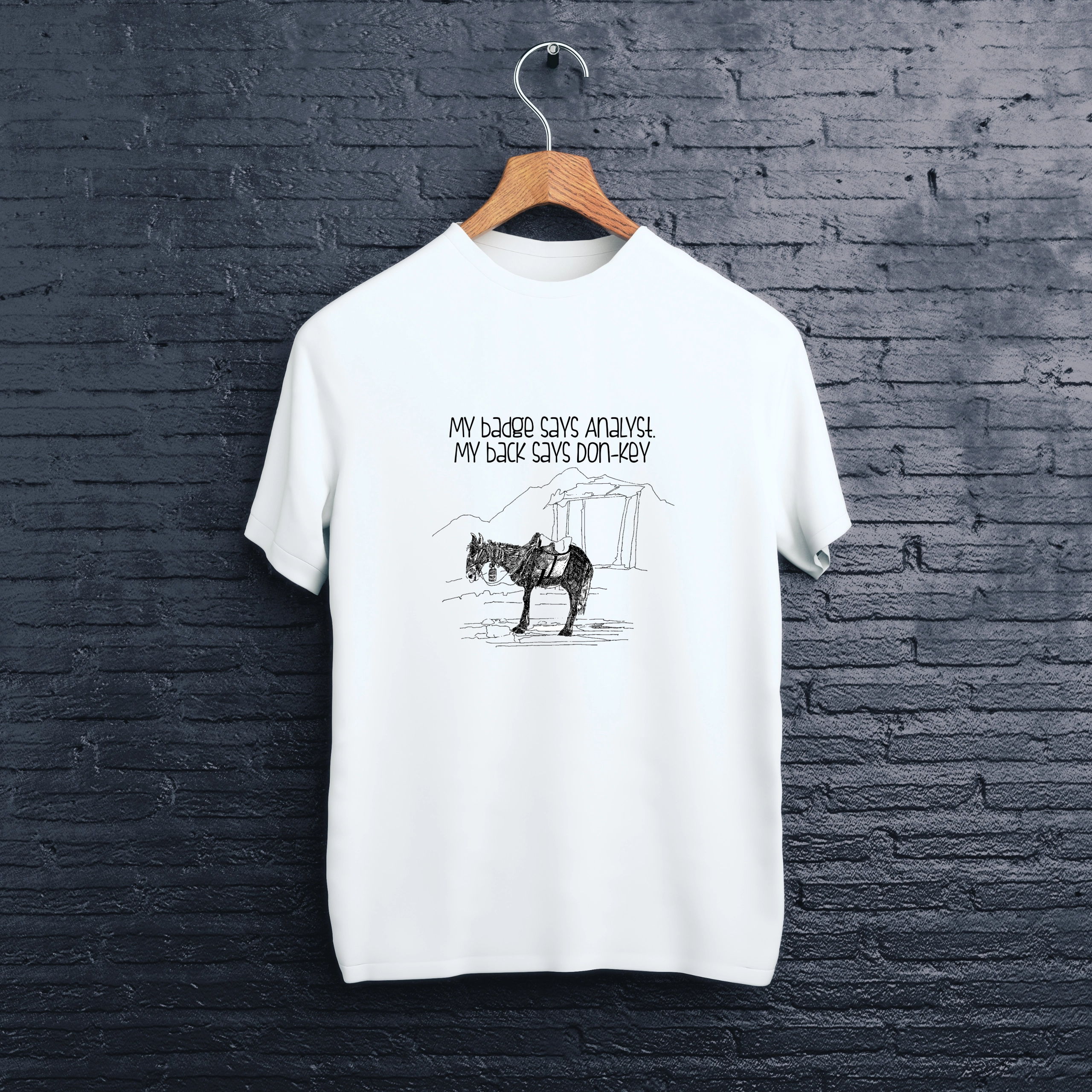When the org chart says “knowledge worker” but your lumbar says “pack animal,” this tee tells the truth with a wink. A crisp pen-and-ink donkey anchors the design—minimalist, witty, and painfully relatable to anyone who’s carried a project across the finish line while half the team was “on OOO.”