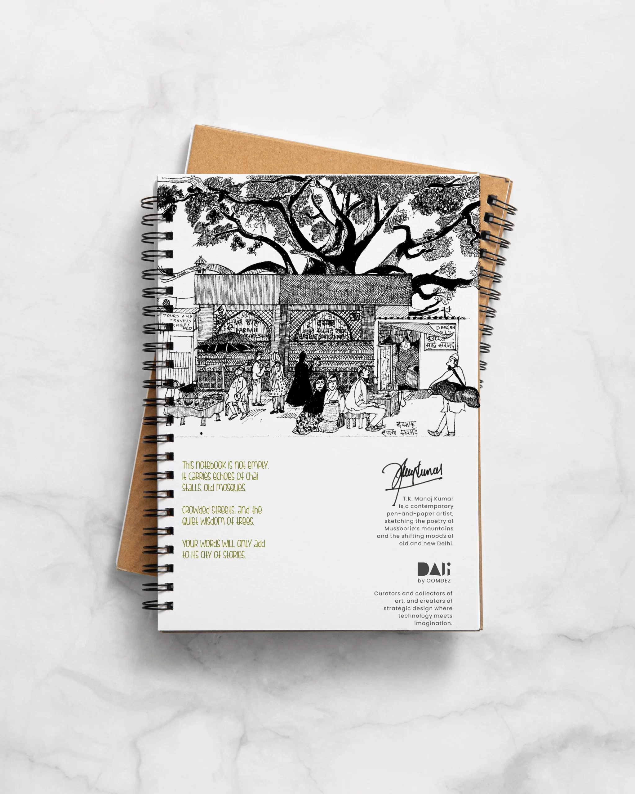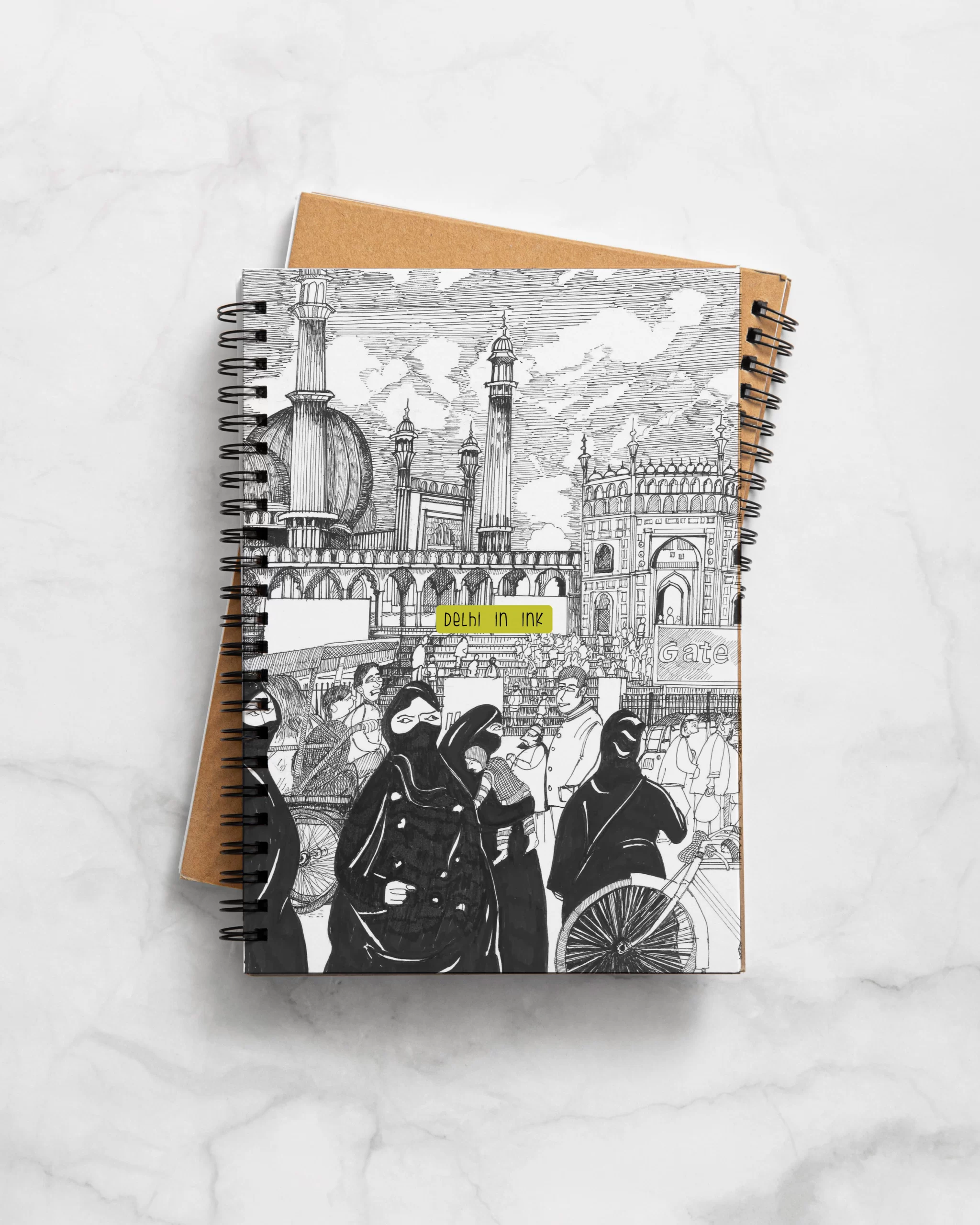This A5 illustrated spiral notebook carries Old Delhi on its covers: the front shows the Jama Masjid quarter alive with movement; Your words will feel right at home.